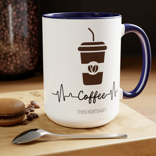 Coffee Then Mortgages Two-Tone Coffee Mugs, 15oz