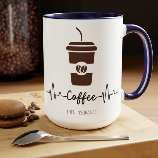 Coffee Then Insurance Two-Tone Coffee Mugs, 15oz